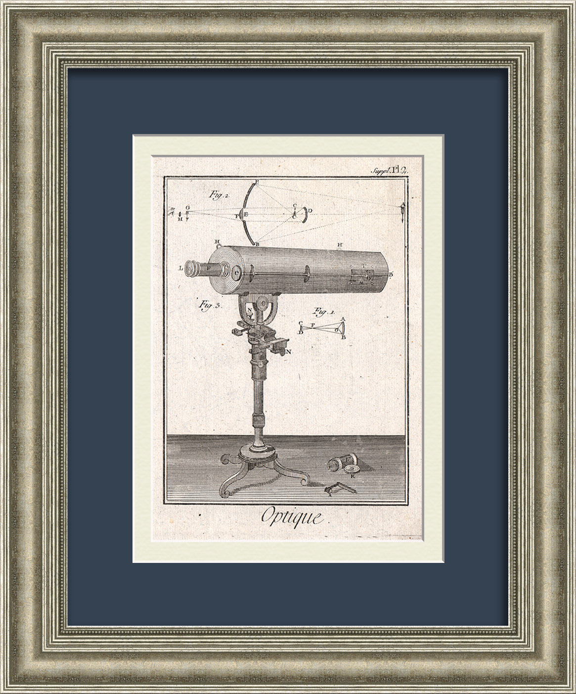 Уникальная, антикварная гравюра второй половины XVIII в. представляет собой модель телескопа-рефлектора (рис. 3), а именно проекта шотландского математичка и астронома Дж. Грегори (1638-1675), разработанного в 1663 г. Несмотря на это, григорианский телескоп был построен впервые Робертом Гуком лишь в 1673 г. До него свою модель телескопа-рефлектора представил Исаак Ньютон в 1668 г., который является самым ранним построенным отражающим телескопом. Схема его конструкции представлена на гравюре под номером 1. Завершает композицию оттиска схема телескопа М. Баркера (рис. 2). Оттиск уменьшенного формата являлся частью «Recueil de planches, pour la nouvelle edition de Dictionnaire raisonne des sciences, des arts et des métiers, avec leur explication» / «Собрание картин для новой редакции Толкового словаря наук, художеств и ремесел, с объяснениями» Д. Дидро и Ж. ле Рона д'Аламбера.