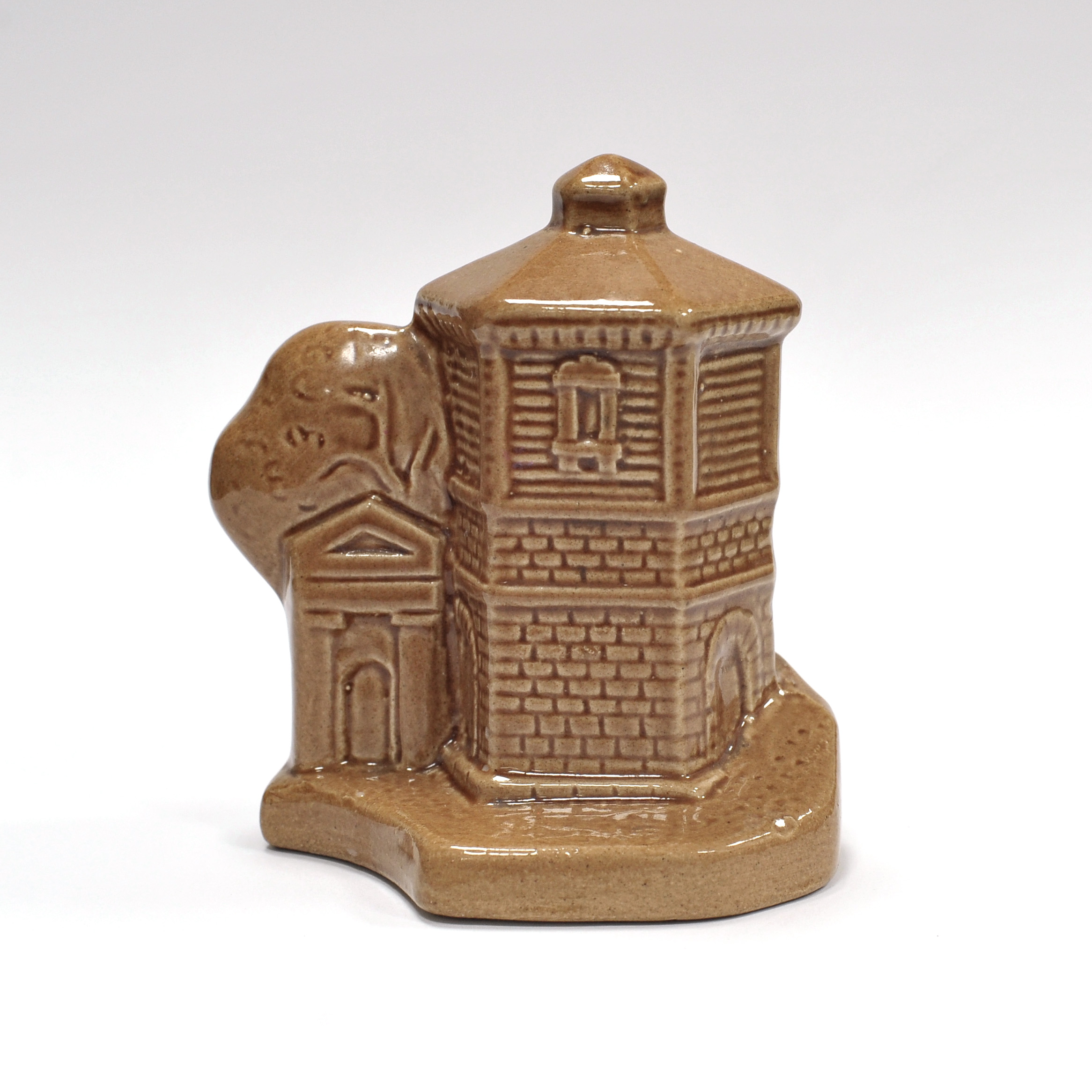 Миниатюрная фаянсовая статуэтка в виде водонапорной башни Екатеринбурга (Башня на Плотинке) была произведена на Свердловском керамическом заводе (СКЗ), который в 1977 г. был переименован в Сысертский завод художественного фарфора, по случаю юбилея 250-летия города Екатеринбурга (тогда - Свердловска). Водонапорная башня располагается в Историческом сквере и является памятником федерального значения. Она была построена в 1890-х гг. для нужд железнодорожных мастерских, располагавшихся в помещении Монетного двора и казённой механической фабрики. Сейчас в здании башни располагается филиал Музея истории Екатеринбурга. На цоколе статуэтки водонапорной башни отмечена дата существования города «1723-1973 Свердловск». На дне изделия два клейма «СКЗ» в шестиугольнике.