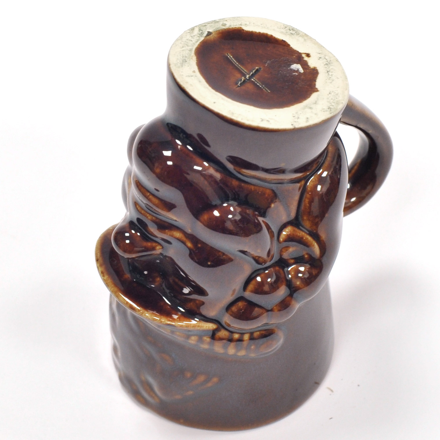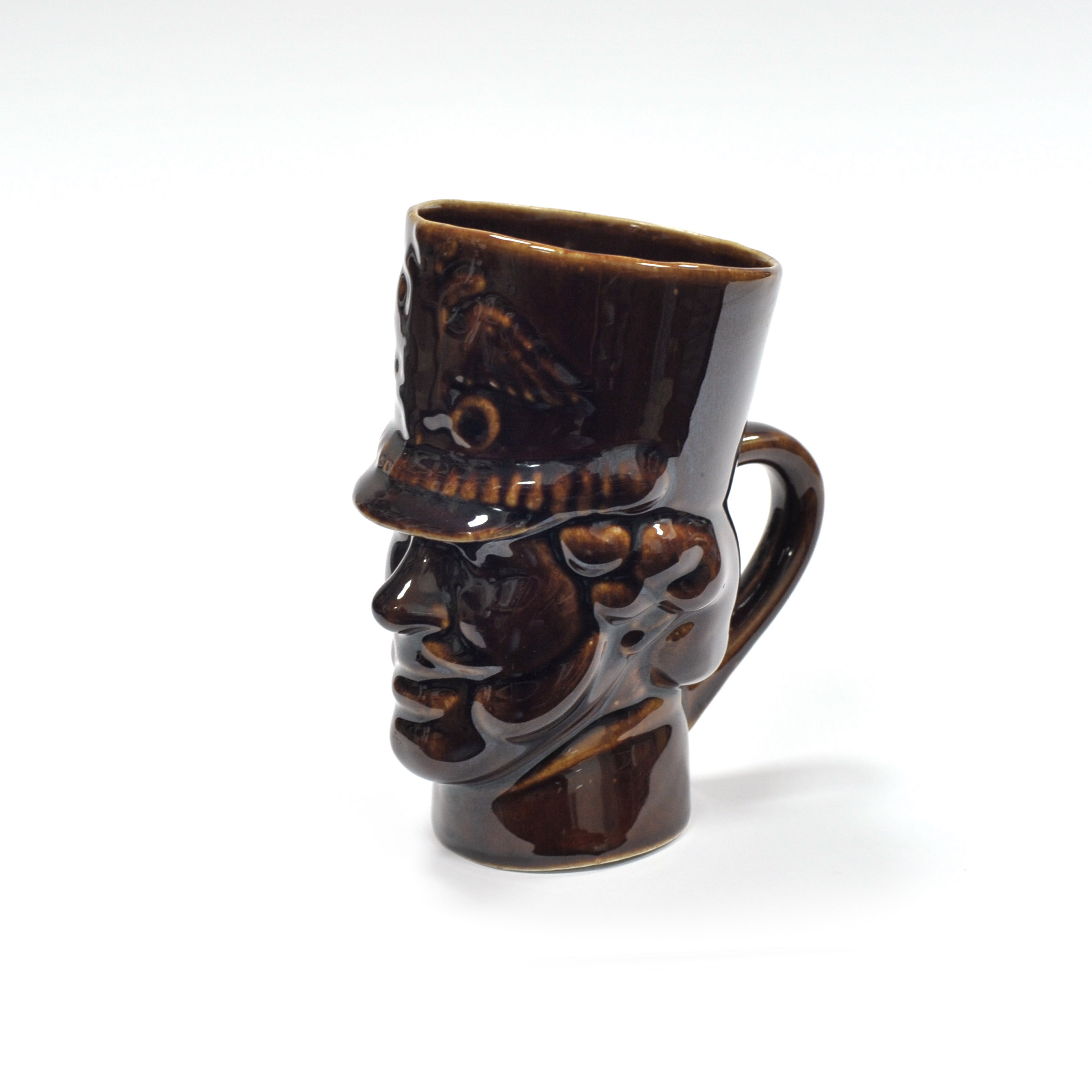 Винтажная кружка в технике обливной керамики представляет собой голову гусара времен Российской империи, о чем говорит двуглавый орел на головном уборе воина. Представленный экземпляр был выполнен в советское время по модели времен Российской империи. Кружки-головы были крайне модным явлением в XVIII в. Впервые они были выпущены в Российской империи в 1780-е гг. на заводе Ф.Я. Гарднера (ДФЗ, Вербилки). Это были так называемые «басурманские головы» турок или турчанок. Выбранный мотив был связан не только с русско-турецкими войнами, но и с модой на ориентализм. Экземпляры кружек в виде головы гусара уже известны с начала XIX в. (Кружка в виде головы гусара. 1810-1830-е гг., ГИМ).