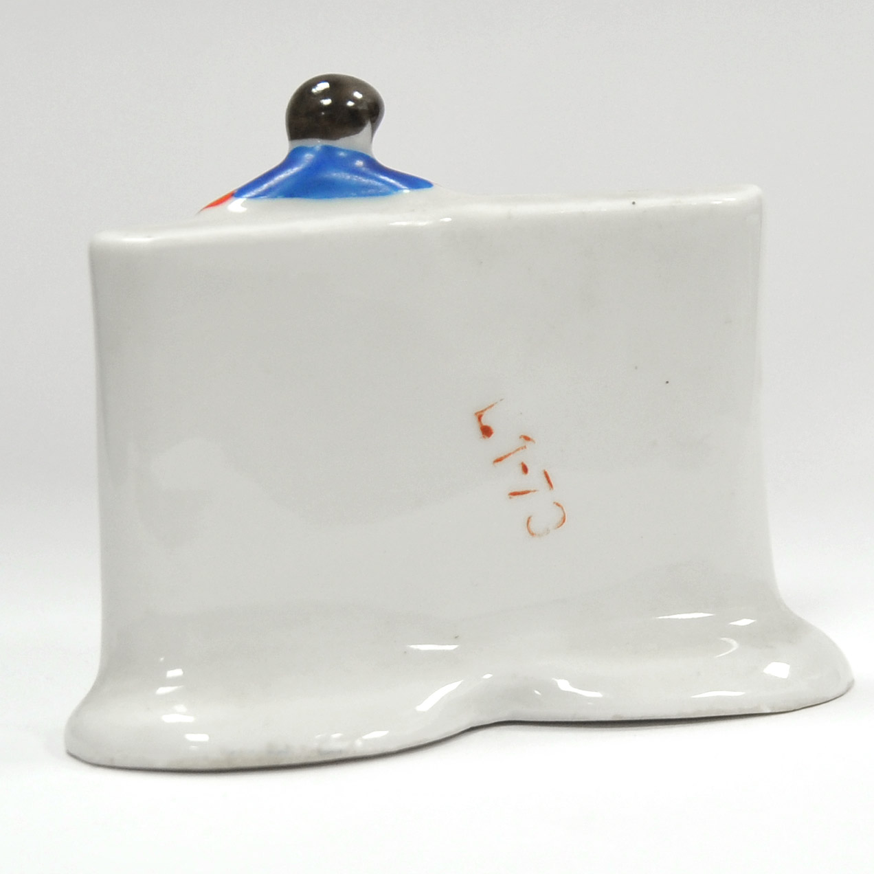 Предмет в хорошей сохранности. На дне статуэтки клеймо Первомайского фарфорового завода - красным надглазурно. Прекрасный тематический подарок болельщику ЦСКА.